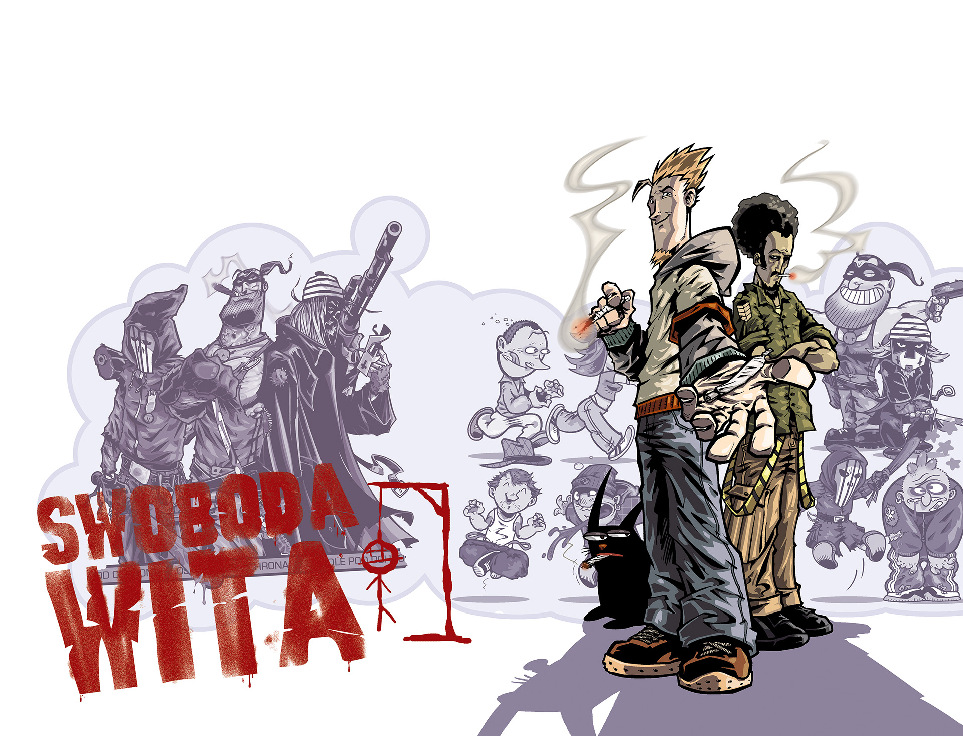 The Liberty Estate 2 comics mini-series - comedy / drama. Writer / artist / additional colorist: Śledziu, colorist: Bartosz Ślesicki. Published by Niezależna Prasa 2003-2006.
