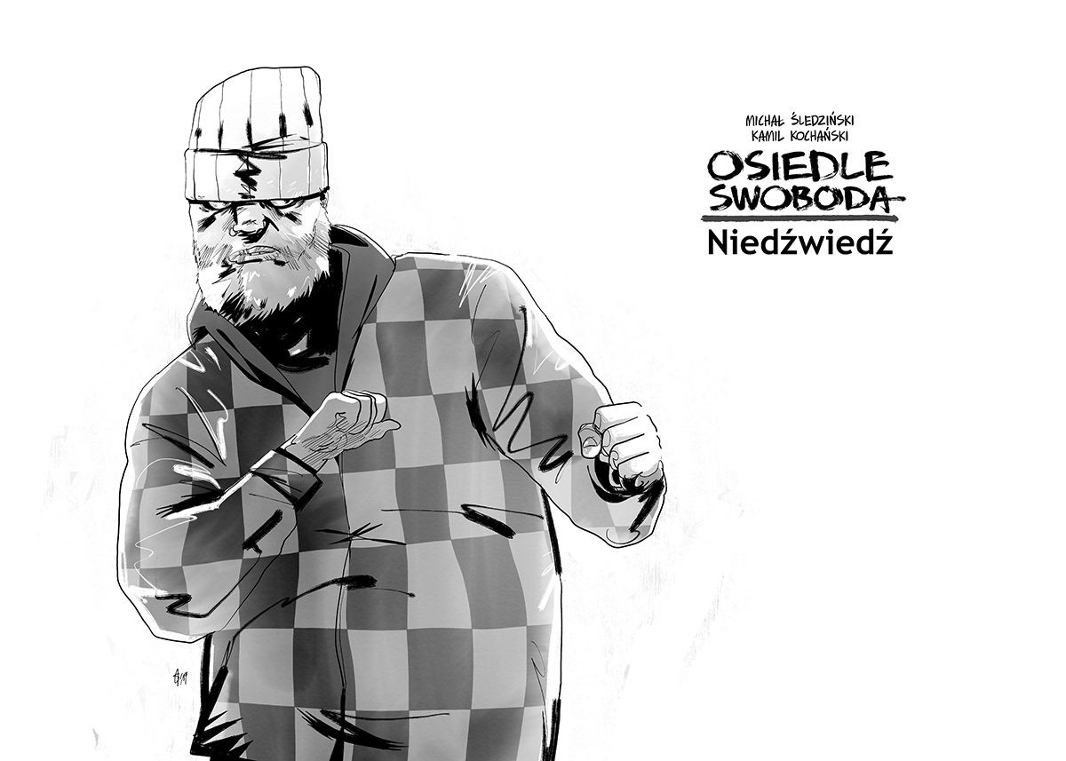 The Liberty Estate: The Bear (2nd print) graphic novel. Comedy / drama. Writer: Śledziu / artist: Kamil Kochański. Published by Kultura Gniewu, 2019.